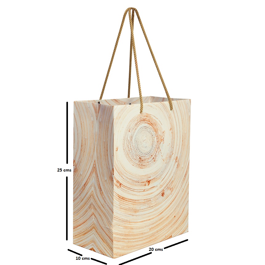 Beige Wood Pattern Paper Bag – Gifting, Hamper, Wedding, Birthday, Corporate, Festival, Packing Pack of 5